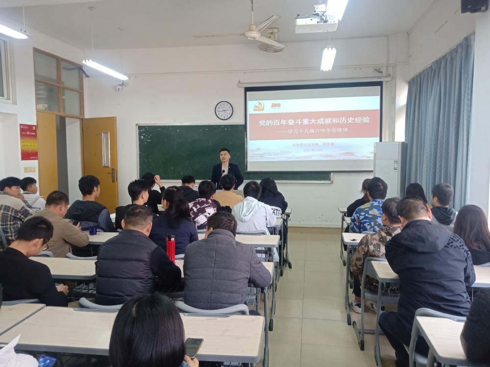 根据《中共英国威廉希尔公司官网委员会 英国威廉希尔公司官网关于认真学习宣传贯彻党的十九届六中全会精神的通知》安排部署,12月30日下午,交通与航海学院在理工楼309教室举行学习贯彻党的十九届六中全会精神宣讲会,邀请我校马克思主义学院副院长、副教授郑长青博士作《党的百年奋斗重大成就和历史经验——学习十九届六中全会精神》专题宣讲。院党委副书记(主持工作)兼纪委书记陈霞红主持宣讲会,院长俞文胜教授,全体教职工、学生代表等参加宣讲会。