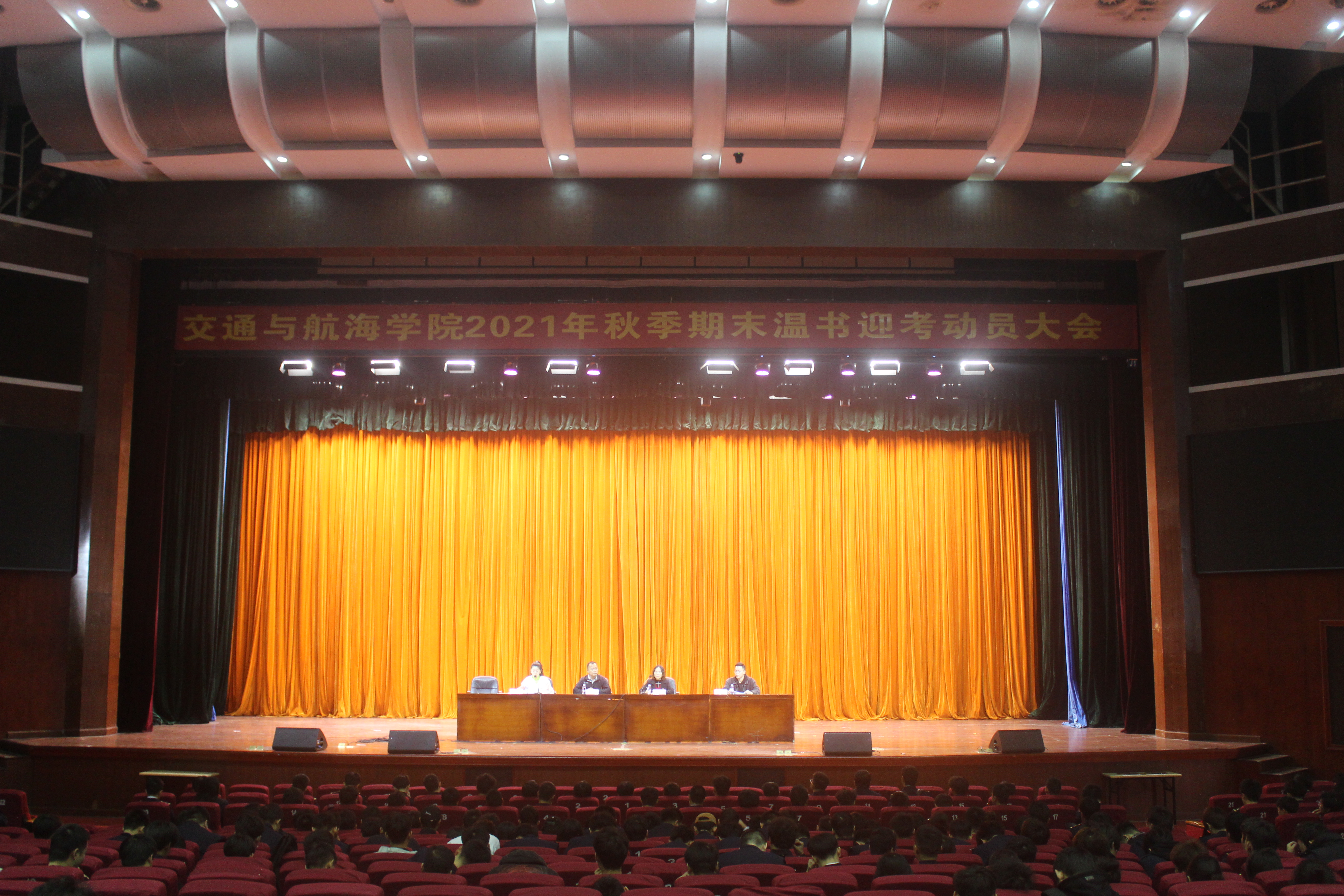 12月17日,交通与航海学院在陈祖昌大礼堂举行2021-2022学年第一学期期末温书迎考动员大会。院长俞文胜、院党委副书记(主持工作)兼纪委书记陈霞红,党政办公室、教学科研办、学工办负责人及各专业辅导员,交通与航海学院全体学生近800人参加。会议由陈霞红主持。