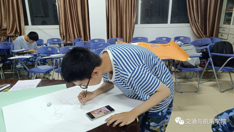 他们落笔传神,激情澎湃,一笔一划点缀着交航学院的无限风采,下面让我们一起来欣赏宣传部认真工作的魅力吧