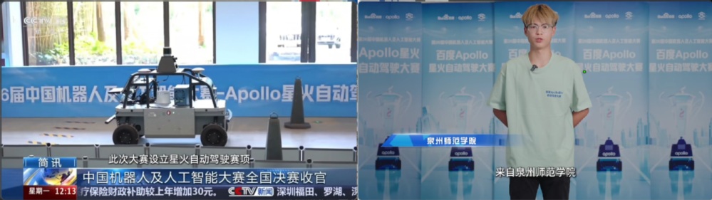 8月24日,第二十六届中国机器人及人工智能大赛全国总决赛在江苏宜兴举行。我院选派的3支代表队全数获奖,汽车服务工程专业安辉、傅明剑、马林泉(指导老师:戴文攀)获得“百度Apollo城市道路自动驾驶”赛道全国一等奖,汽车服务工程专业李杰、唐昊、岳恒(指导老师:戴文攀),汽车服务工程专业陈祥铭、邹陈风临、郑灿辉(指导老师:戴文攀)分获全国二等奖,是福建省所有参赛高校中取得的最好成绩。