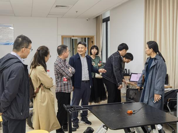 祝青园教授带领我院教师深入参观了实验室的多个关键研究区域,对科研设施、智能车辆领域的科研项目以及取得的成果进行了全面深入的介绍,同时展示了实验室在环境感知、路径规划、车辆控制等关键技术领域的创新成果,其团队的博士和硕士生们也重点介绍并演示了一系列尖端实验设备,这些设备在智能车辆领域均属技术前沿。