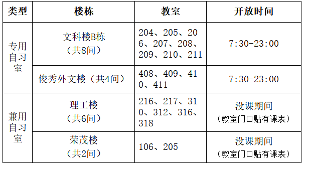 自习室分为两类,具体安排如下: