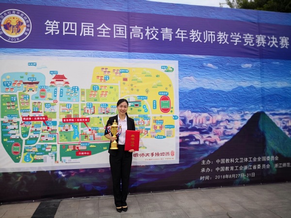 8月27日—31日,第四届全国高校青年教师教学竞赛决赛在浙江师范大学举行,本次竞赛由中国教科文卫体工会全国委员会主办,浙江省教育工会、浙江师范大学承办,来自31个省(区、市)和新疆生产建设兵团的105所高校的129名选手参加了比赛。参赛高校包括清华大学、上海交通大学、华东师范大学等国内著名高校,参赛选手分成文科、理科、工科和思想政治专项组别进行决赛,我校海洋与食品学院柯佳颖副教授代表福建省参加理科组决赛,获得一等奖(最高奖),为福建省代表队获得的唯一的一等奖,也是我省参加该项赛事以来取得的最好成绩。