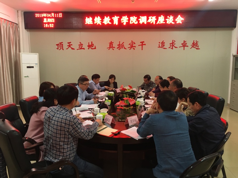 4月11日下午,副校长黄江昆到继续教育学院调研。发规处、人事处、教务处、后勤管理处、成功对外交流学院负责人陪同调研。继续教育学院党政领导,各科室负责人参加调研座谈会。