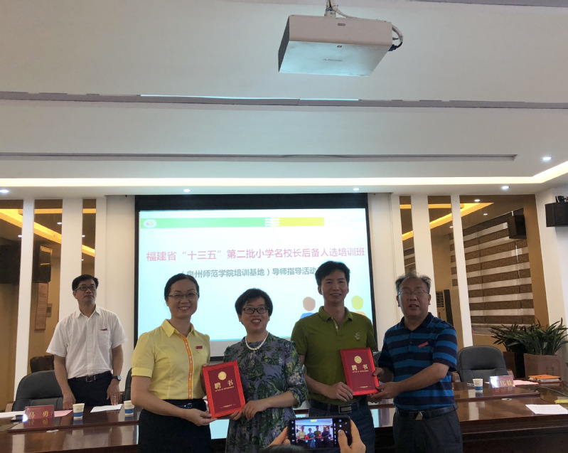 7月25日,继续教育学院组织福建省“十三五”第二批小学名校长后备人选培训班在泉州丰泽区崇德实验小学开展导师指导活动。泉州地区12名培训班学员参加活动。学院领导陈秋燕、陈建宁、王宏出席活动开班式,并为福建省名校长、正高级教师、泉州市丰泽崇德实验小学校长苏伟毅,福建省教育科学研究所基础教育研究室主任、研究员郭少榕颁发聘书。