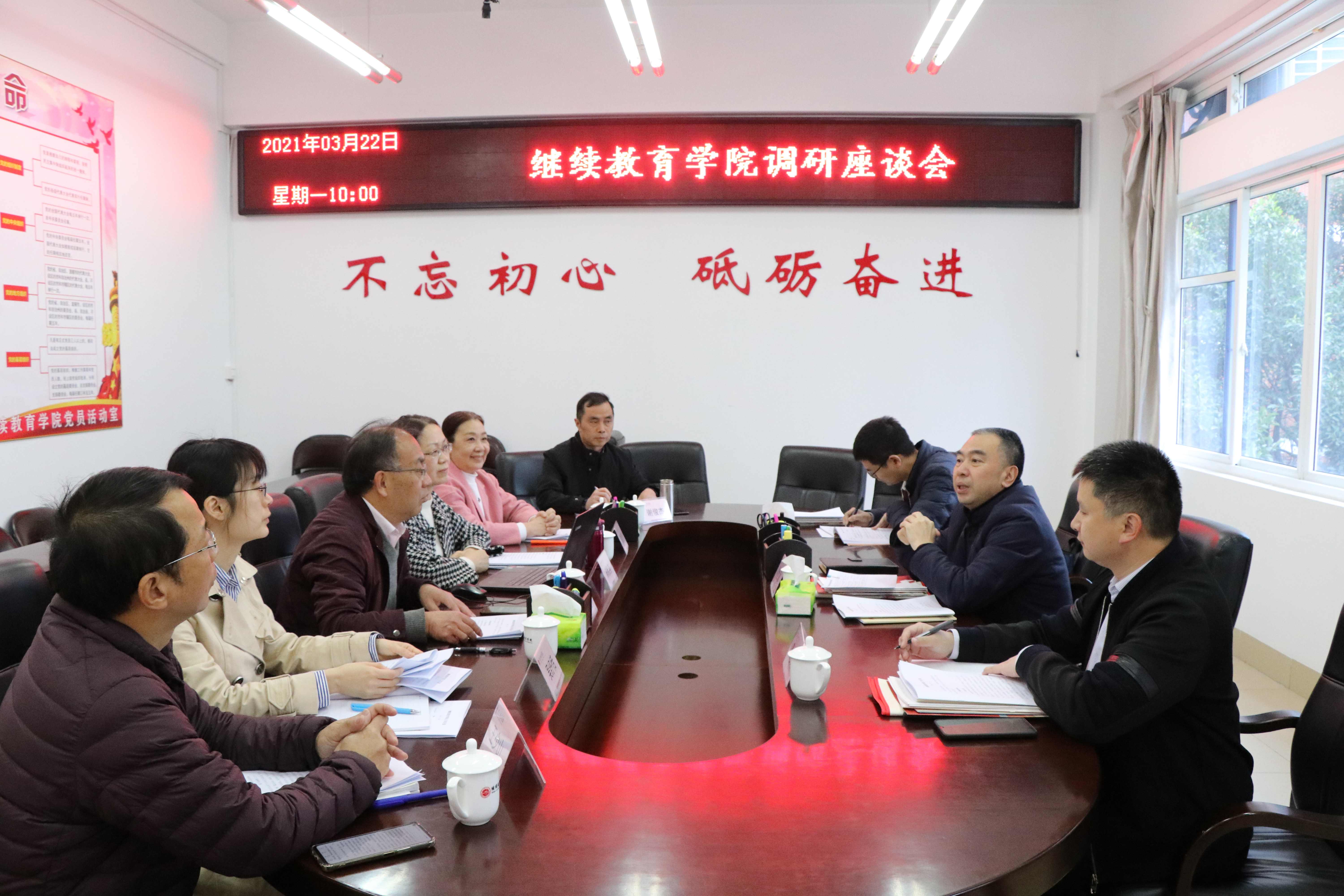 3月22日上午,校党委常委、纪委书记、监察专员邓世章到我院开展推动新时代学校纪检监察工作高质量发展专题调研,校纪委(监察专员办)综合室负责人参加调研,继续教育学院党政负责人、学院相关科室负责人参加了调研座谈会。
