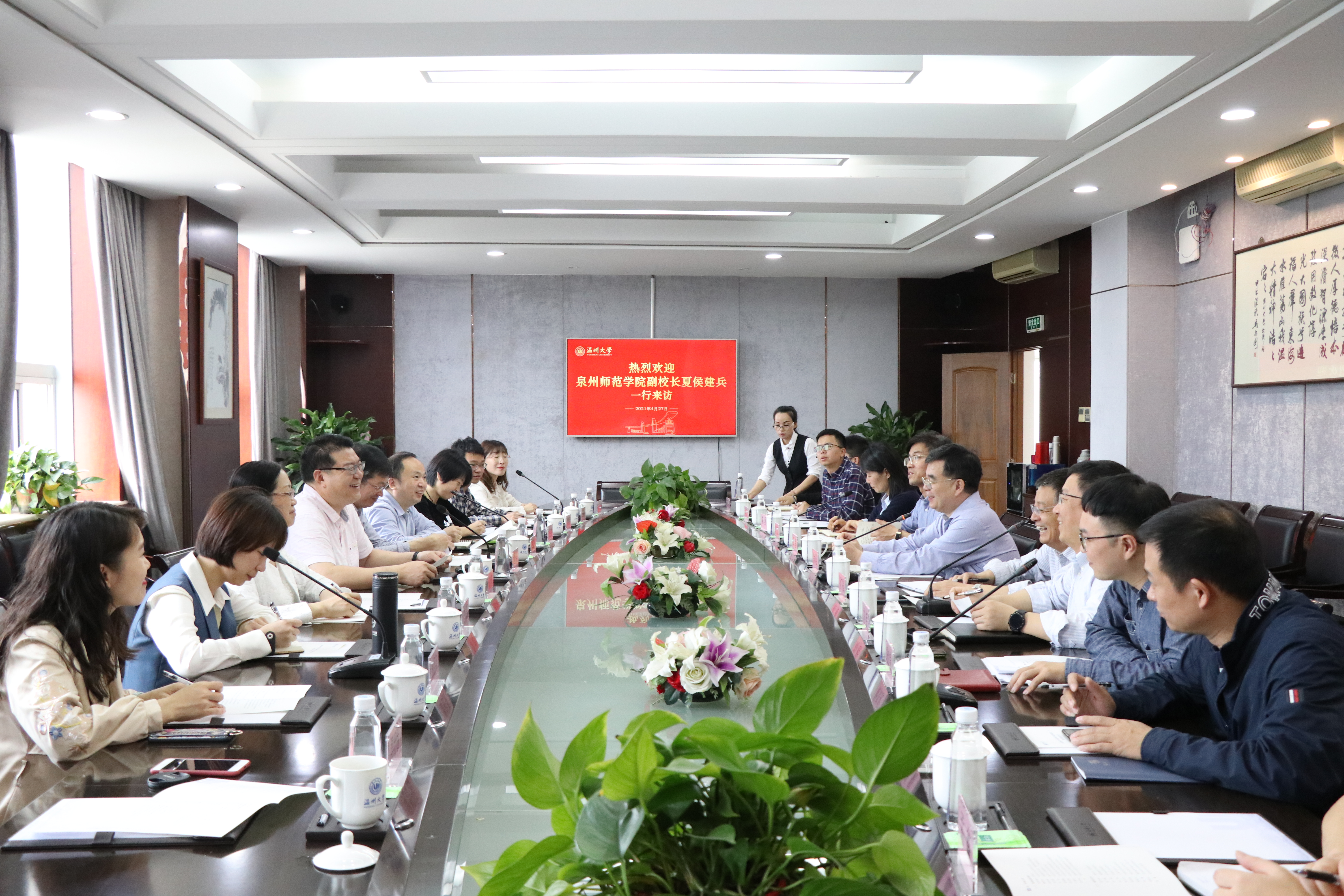 4月27日,为拓宽工作思路和视野,对标学习兄弟高校的先进经验,落实开展“再学习、再调研、再落实”活动,副校长夏侯建兵带领教师工作部、发展规划处、科研处、研究生处、继续教育处负责人一行10人赴温州大学考察调研。