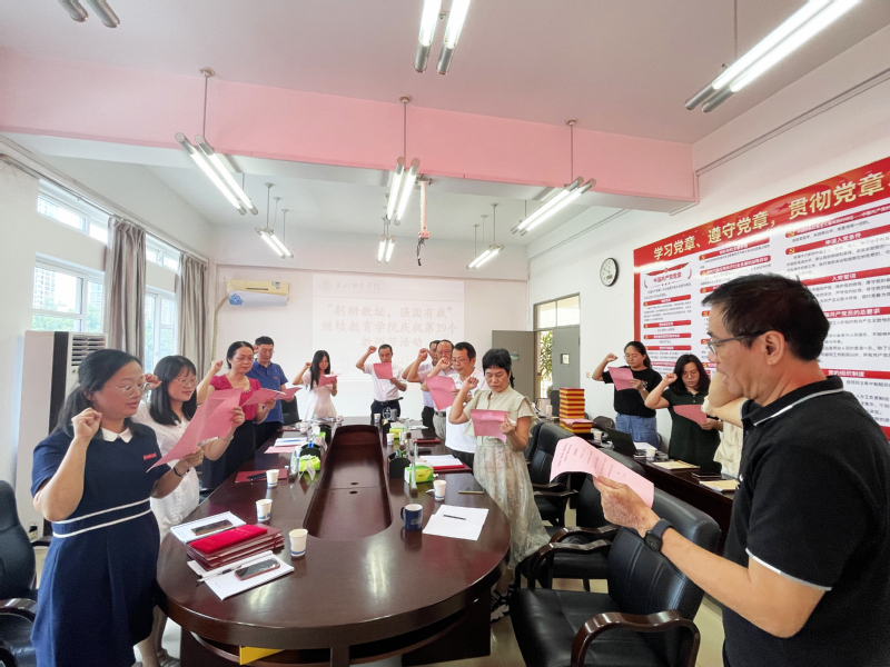 青年教师代表也发表了感言,表示一定不会辜负老教师们的期望与厚爱,要以他们为榜样,坚定理想信念、厚植爱国情怀、涵养高尚师德,努力做党和人民满意的“四有好老师”。随后,全体教师在副院长王宏带领下庄严宣誓人民教师誓言,并签名。
