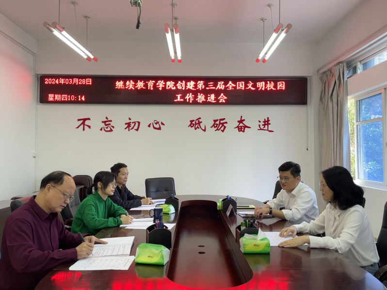 3月28日上午,学院在文科楼A315会议室召开创建第三届全国文明校园工作推进会。学院领导、各科室负责人参加会议,会议由学院党总支书记林国宏主持。
