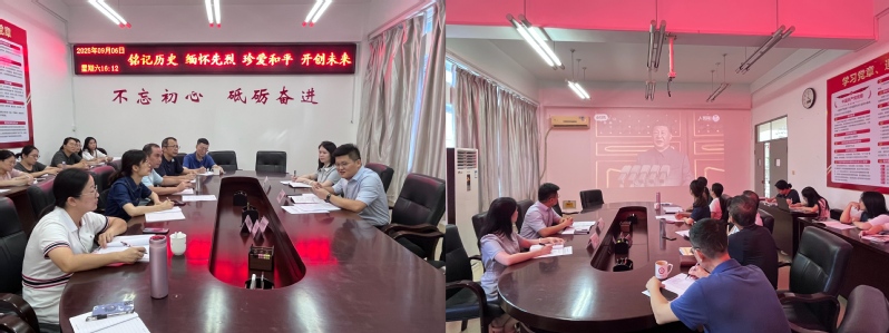 9月6日下午,学院召开党总支中心组(扩大)学习会,深入学习贯彻习近平总书记在纪念中国人民抗日战争暨世界反法西斯战争胜利80周年大会上的重要讲话精神,铭记历史荣光,汲取奋进伟力。党总支书记林国宏主持会议。