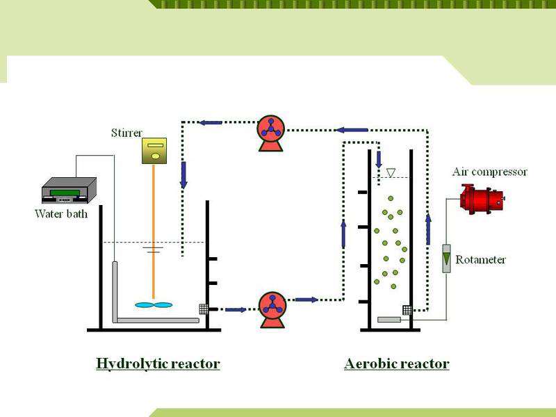 厌氧-好氧生物处理技术虽然已逐步应用于地表水及土壤的生物修复和生物处理领域,但是存在运行稳定性较差、易产生污泥膨胀、抗冲击负荷能力小、厌氧硝化反应器易产生酸化及毒性抑制等问题。水解-好氧循环工艺放弃产甲烷阶段的目的在于仅利用厌氧过程中的水解和产酸脱氢阶段,将大量悬浮物水解成可溶性物质、难生物降解有机物降解为易生物降解物质、大分子有机物降解为小分子物质,节省了反应时间,提高了废水的可生化性,将水解过程着眼于整个系统的处理效率和经济效益,通过强化“水解”与“好氧”两过程,充分利用水解、好氧微生物各自的优势,达到降解极限,使两种不同降解过程对废水的降解作用达到时空上的一体化,从而降低工业废水处理的投资成本和运行费用,快速有效地处理企业间歇排放的小流量高浓度难降解有机废水,实现水资源的可持续利用与发展。
