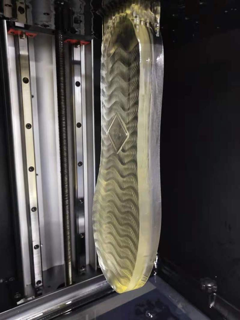 本项目研发出一种用于光固化3D打印弹性体的光敏树脂组合物及其制备方法。所述组合物包括如下百分比含量的原料:丙烯酸基封端的柔性聚氨酯预聚体20~60%,聚氨酯丙烯酸酯类树脂20~60%,聚乙二醇二甲基丙烯酸酯类树脂20~50%,活性稀释剂20~50%,光引发剂1.0~5.0%,消泡剂:0.1~1.0%,流平剂0.1~1.0%,抗氧化剂0.1~1.0%。本成果具有较高的反应活性,可用于常规的SLA、DLP等桌面级3D打印装备,打印出的制品耐磨性好、收缩率小、不易黄变、弹性佳,具有优良的力学性能。