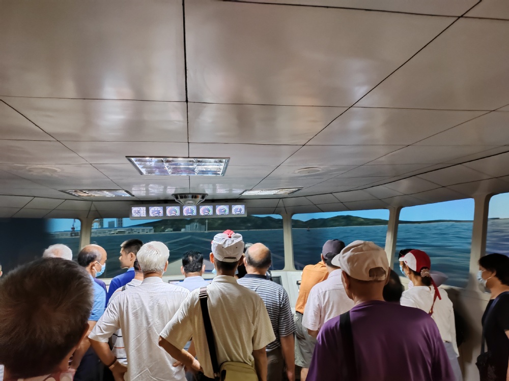 活动现场,老同志们在交通与航海学院讲解员的带领下先后参观了水上训练中心和大型船舶操纵模拟实验室。在水上训练中心,老同志们实地观看了“泉州号”、救生艇等,对海上安全应急、海上求生、水手工艺等基本知识和技能有了初步了解。大型船舶操纵模拟实验室由一条主本船、三条副本船和控制室构成,老同志们触摸着船舶驾驶仪表盘,并在模拟器上体验如何操纵船舶航行,感受了在海上劈波斩浪的新奇。