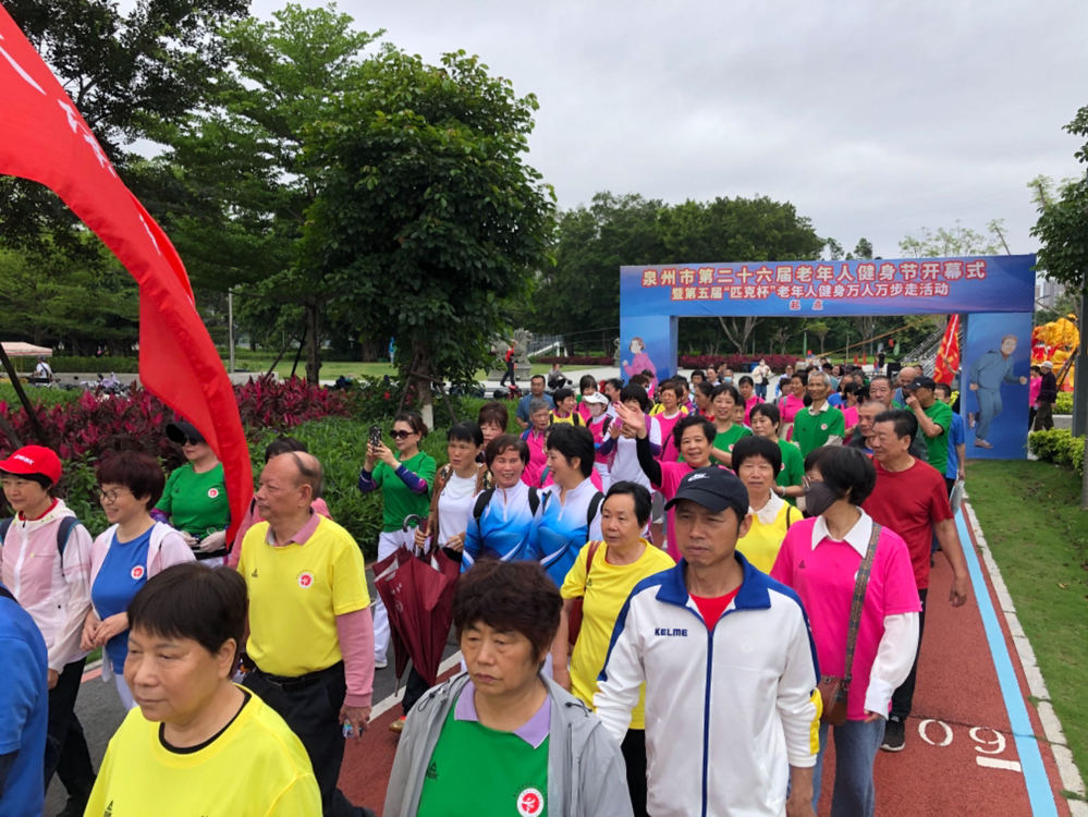 4月24日上午,由中共泉州市委老干部局、泉州市体育局等单位联合主办,我校老体协等单位协办的泉州市第二十六届老年人健身节开幕式暨第五届“匹克杯”老年人健身万人万步走活动在泉州江滨公园浦西园举行。校老体协组织离退休教职工代表共50余人参加。