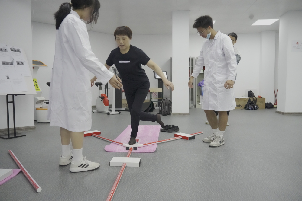 活动现场,工作人员对离退休教职工动脉硬化、骨密度、人体成分分析、平衡、亚健康状态等方面进行检测,同时依据“运动健康评估和风险筛查”数据报告,由专业教练制订科学、可行、有效运动处方并对康复训练进行指导。
