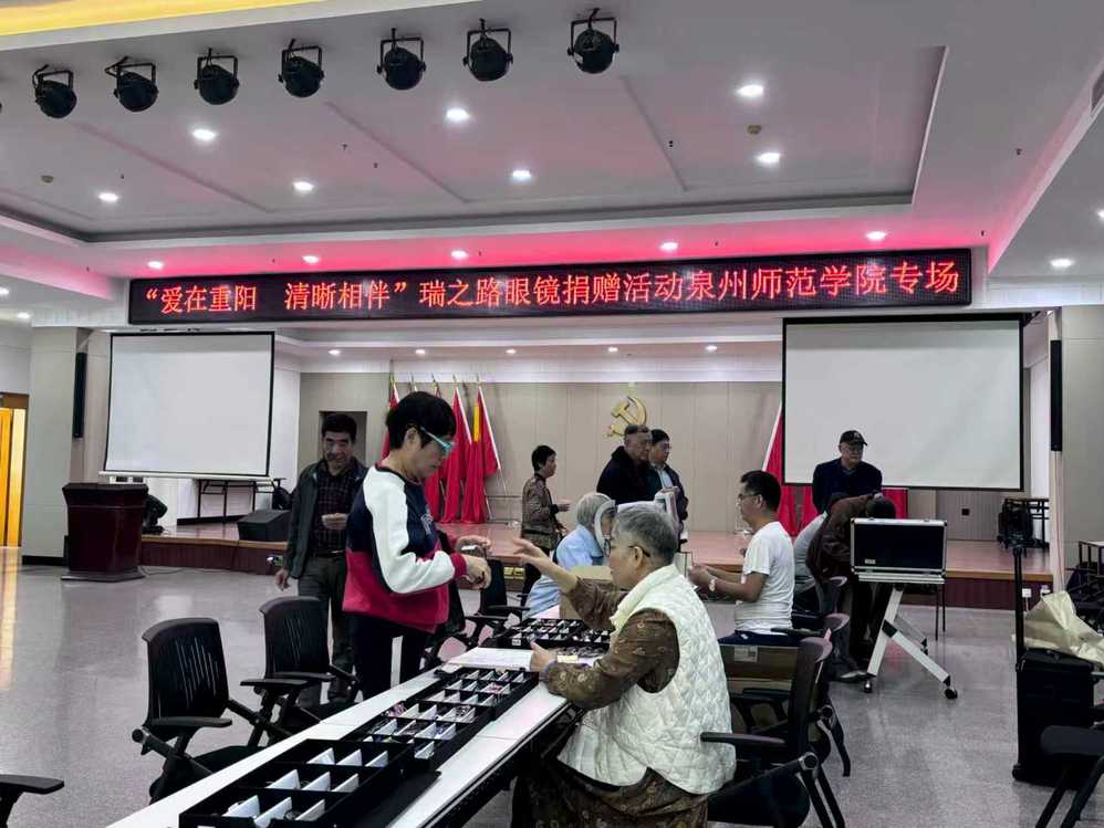 12月2日,离退休工作办公室联合瑞之路(厦门)眼镜科技有限公司在泉州市离退休干部党员服务中心五楼多功能厅,为退休教职工举办了一场温馨实用的“爱在重阳 清晰相伴”专场捐赠眼镜活动。活动旨在关爱老教师们的视觉健康,向奉献教育事业的老师们表达崇高敬意。