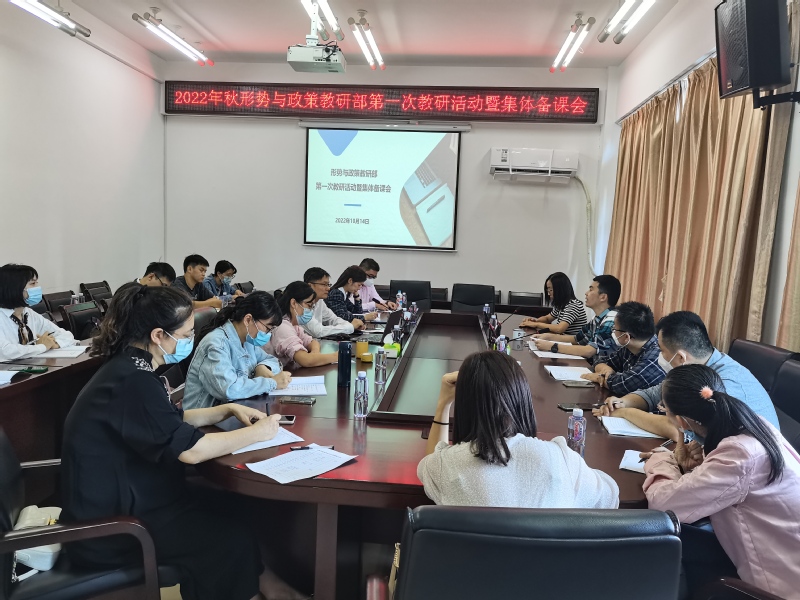 10月14日下午,形势与政策教研部在文科楼A414举行新学期首次集体备课会。马克思主义学院副院长郑长青以及教研部所有教师参加。本次备课会的专题主题是形势与政策课教改研讨暨“高效统筹疫情防控和经济社会发展”集体教学备课。