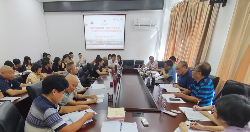 会上,党总支书记颜水发作了“党建引领强动力 铸魂育人建新功”为主题的专题党课。重点讲解习近平总书记关于党的建设的重要思想,传达学校党委暑期中层干部培训班主要精神,并结合新学期学院工作实际,要求全体教师党员要学会巧打“五‘组’拳”,在铸魂育人上建功立业。一要亮出“头拳”,新精神落实到位。各支部要落实中央党建工作新要求和学校党委工作部署,充分发挥教师党员先锋作用,在找题先做、有题必做、难题敢做、老题新做等“四做”方面作出表率,在岗位上落实立德树人根本任务。二要抢出“快拳”,新学期工作到位。增强敢拼敢闯的“争抢意识”,在教育教学过程中力争做到“四精”,即常规管理——精细、课程建设——精品、教师队伍——精干、教研工作——精深。三是专出“准拳”,新任务对接到位。对准教育部、省教育工委等上级文件要求,在参与课题申请、项目申报、思政赛事等方面进行提前筹谋,从肯下笨功夫、讲究巧功夫、雕琢细功夫、练就真功夫等“四功夫”入手,争取有的放矢有所突破。四是善出“新拳”,新融合落实到位。坚持“党建工作融入业务、守正创新融入日常、新任教师融入角色”的党建工作“三融合”主线,围绕抓牢关键点——推动支部与教研部同频共振、找准结合点——促进党建与业务相互促进、把握着力点——实现党员与组织同向同行等“三点”举措,提升党建工作成效。五是打出“重拳”,新防线震慑到位。各党支部要在抓严党规党纪、抓实意识形态工作、抓好师德师风等“三抓”方面下足气力,做到守土有责、守土负责、守土尽责。特别要敦促教师党员带头在师德师风方面做到“四让”,即让学院工作因我而精彩、让教师团队因我而自豪、让师生关系因我而和谐、让学生质量因我而提升,在实践中践行“四有”好老师的标准。