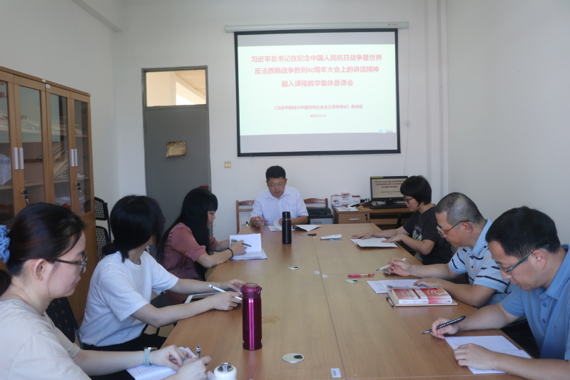 为学习贯彻习近平总书记在纪念中国人民抗日战争暨世界反法西斯战争胜利80周年大会、招待会上的重要讲话精神,9月12日下午,习近平新时代中国特色社会主义思想概论教研部开展了2025年秋季学期首次集体备课会,全体教师参加。