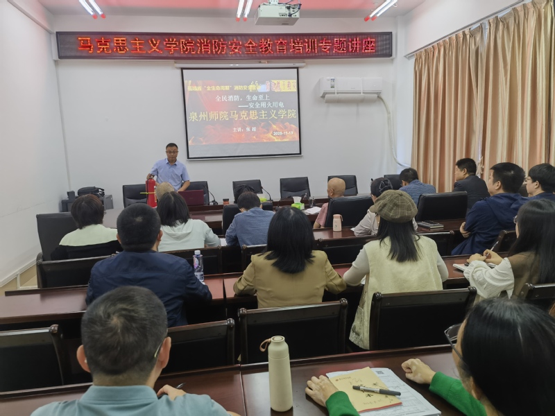 为深入贯彻落实上级关于消防安全工作的部署要求,进一步拧紧教职员工消防安全“思想弦”,全面提升消防安全应急处置实战能力,为学校消防安全“四个能力”建设和高质量“平安校园”创建工作夯实基础,11月14日,马克思主义学院组织开展消防安全教育专题宣讲活动。学院全体教职工参加本次培训,活动特别邀请泉州市子安应急服务有限公司安全专家张超担任主讲。