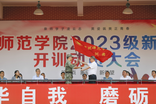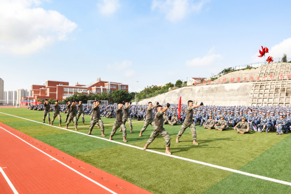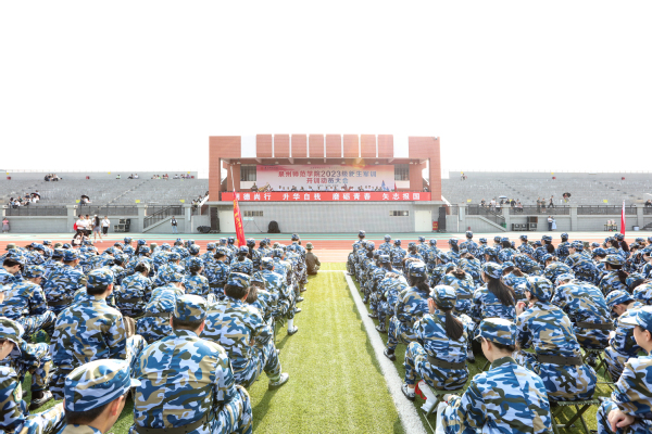 9月18日上午,2023级新生军训开训动员大会在泉州主校区第二田径场举行。