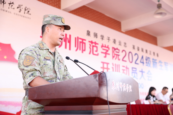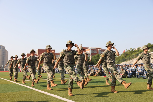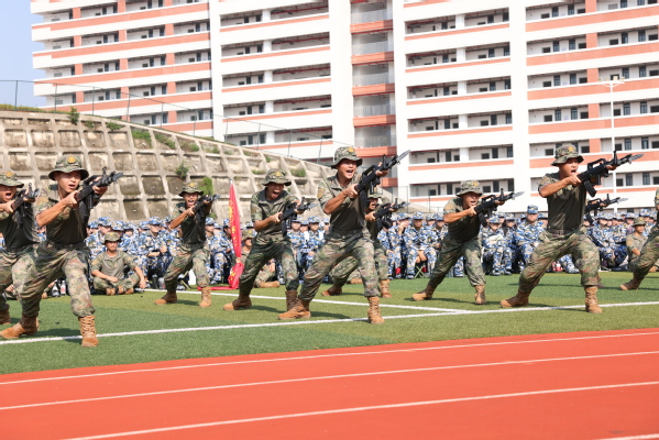 军训团团长江新锋希望参训学生保持坚定的信念和顽强的意志,磨练心智、强健体魄,迈出大学生活坚实的第一步。要求全体教官要用真诚赢得信任,以温暖凝聚人心,引领参训学生挑战自我,接受洗礼。资源与环境科学学院杨淼君代表全体参训新生做了服从命令、听从指挥、吃苦耐劳、超越自我、团结一心、勇闯佳绩的表态。