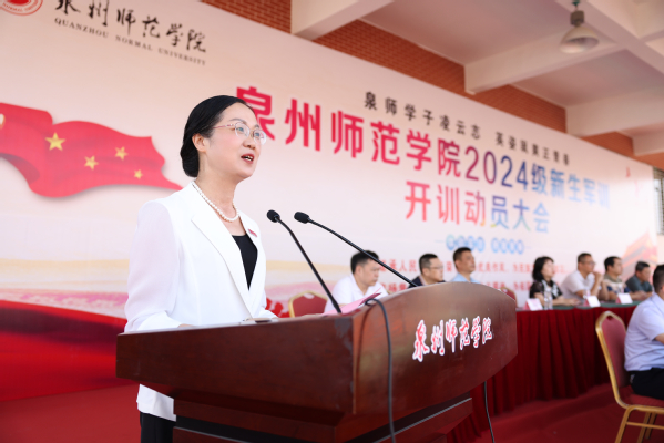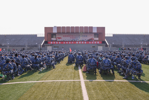 9月10日上午,伴随着雄壮嘹亮的国歌声,我校2024级新生军训开训动员大会在泉州主校区第二田径场隆重召开。副校长夏侯建兵、陈秋燕出席会议,军训领导小组成员、2024级新生辅导员、承训教官及3650名2024级新生参加动员大会。会议由学工部负责人主持。