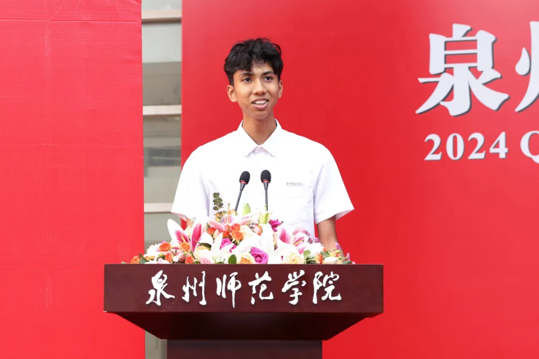 留学生新生代表、来自马来西亚的文学与传播学院2024级广告学专业本科生嘉哈利同学表示,将不断提升自我,积极拥抱机遇,努力成为文化交流的桥梁和对社会有贡献的新时代青年。