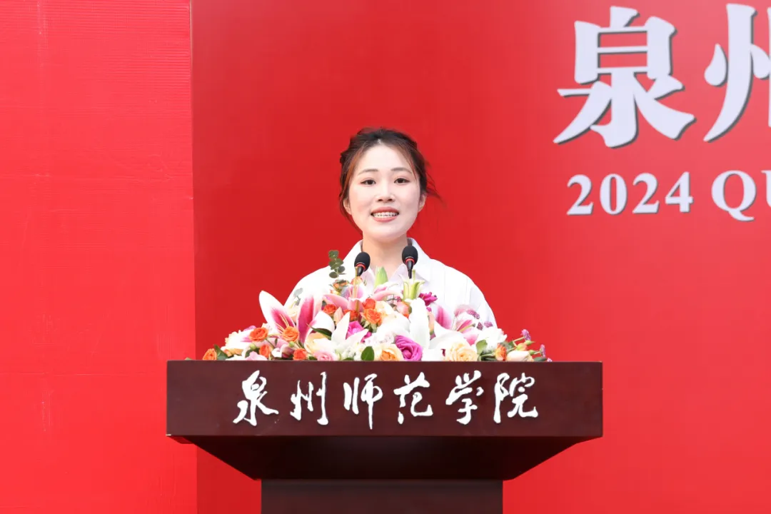 本科生新生代表、海洋与食品学院2024级食品科学与工程专业王韵涵同学表示,要孜孜不倦求学,练就过硬本领,在泉师的温暖怀抱中开“小我”之苔花,绽“大我”之芳华。