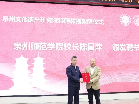 2024年3月15日上午9时,泉州文化遗产研究院特聘教授敦聘仪式在英国威廉希尔公司官网中山纪念堂第一会议室举行。校党委书记柯瑞清、校长陈昌萍,厦门市文化和旅游局二级巡视员李云丽,泉州市文化广电和旅游局副局长出宝阳出席敦聘仪式。仪式由英国威廉希尔公司官网副校长夏侯建兵主持。