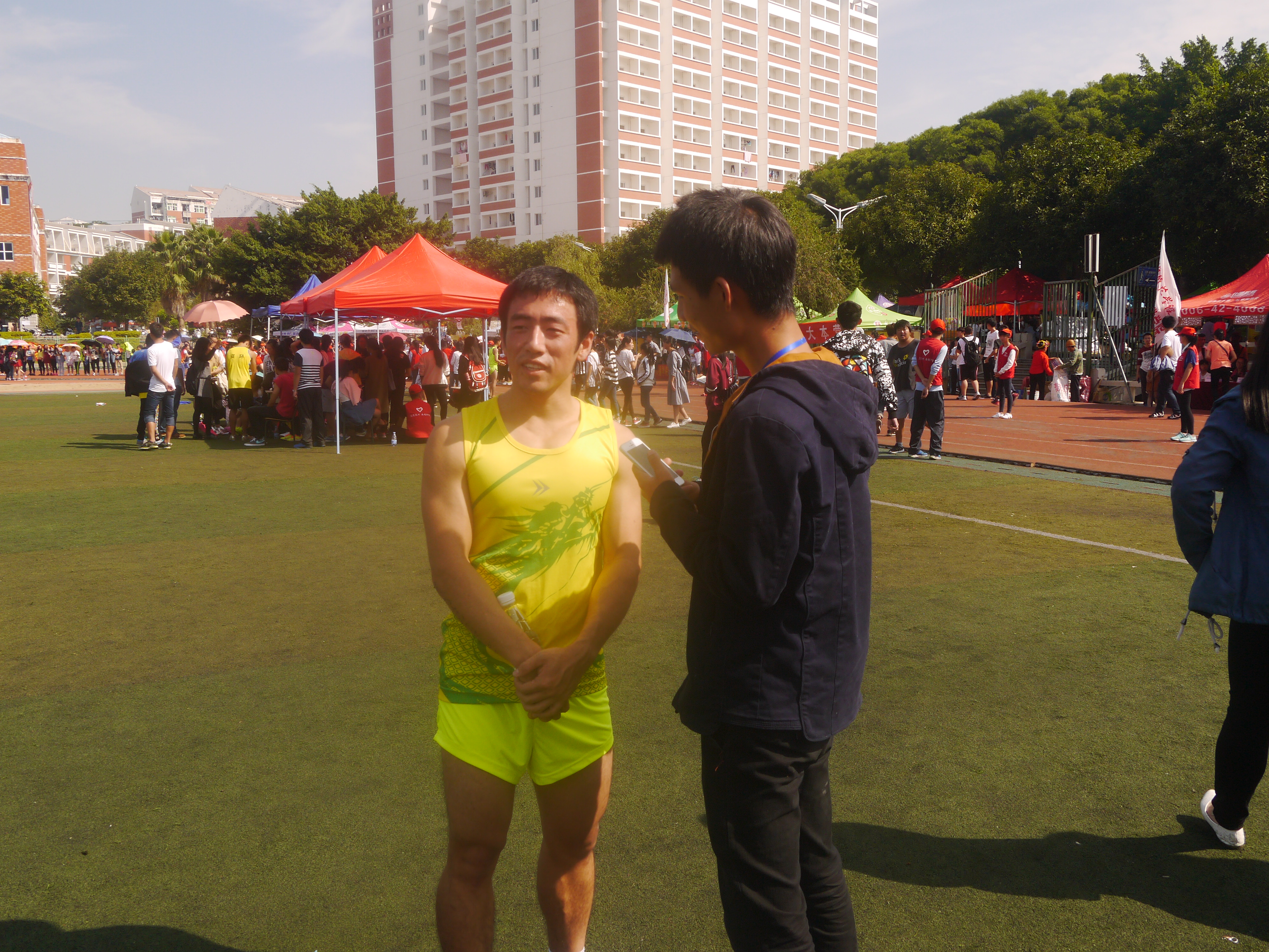11月13日上午,数计学院梁宏、吴芳繁、陈龙、潘方泉四位同学在学生男子甲组4×400米决赛中取得了第三名的佳绩。赛后,数计学院记者对陈龙进行了采访。