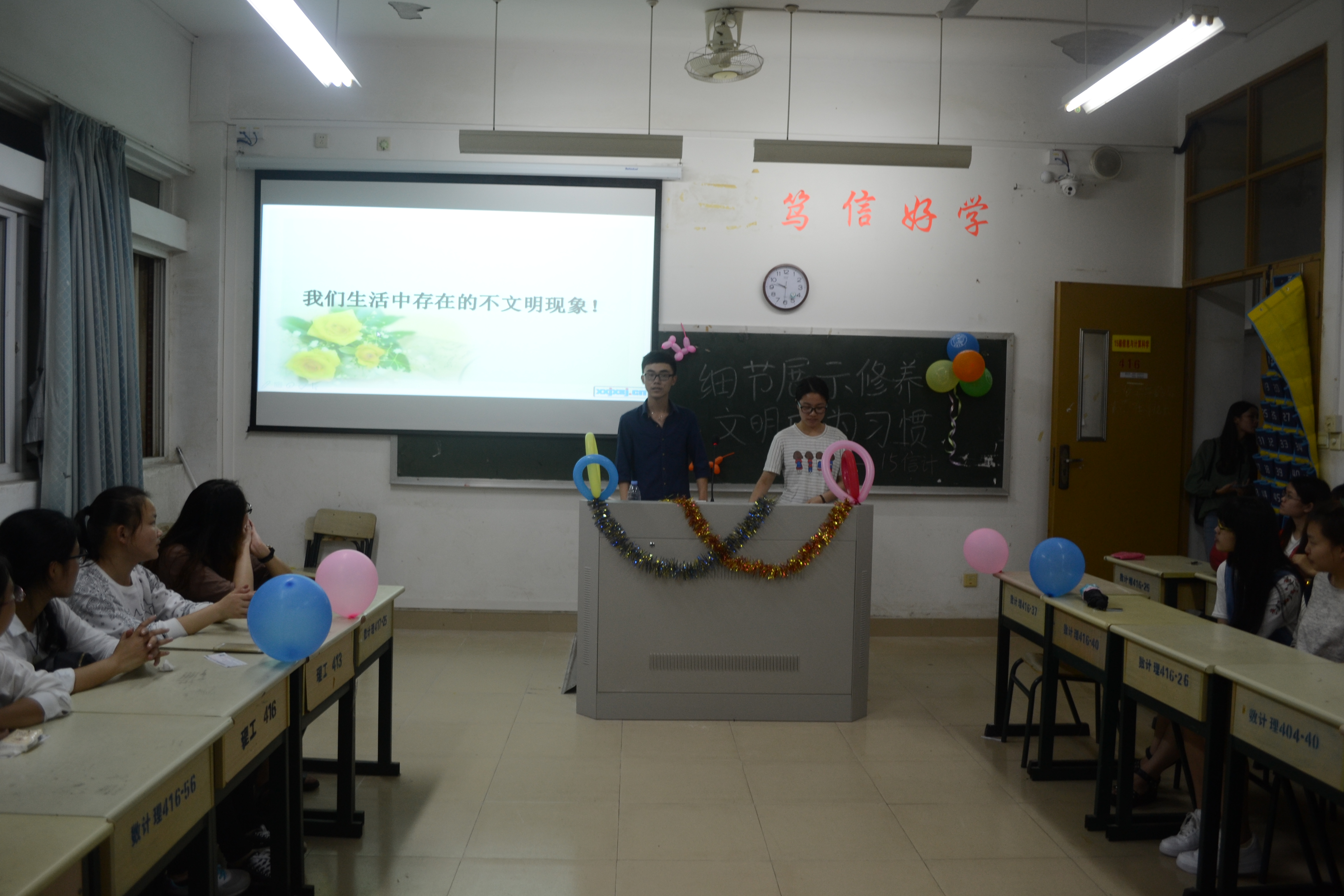 菁菁校园,碧树芳草,需要我们全体学子共同呵护,才能春意常在;莘莘学子,优良学风,要靠我们全体学子孜孜追求,才有其硕果累累;自尊自爱,民族美德,离不开我们全体学子言行相随,才使其蔚然成风。为倡导我院广大学生团员从身边的小事做起, 从自己的一言一行开始,努力提高个人修养、文明理念,我院各班于4月24号晚上7点在理工楼开展“用细节展示个人修养,让文明成为一种习惯”主题团日活动。