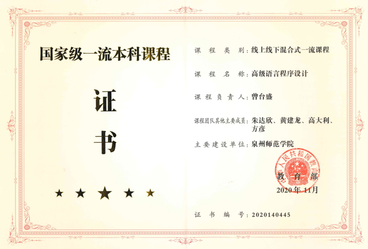 获批福建省一流本科课程5门
