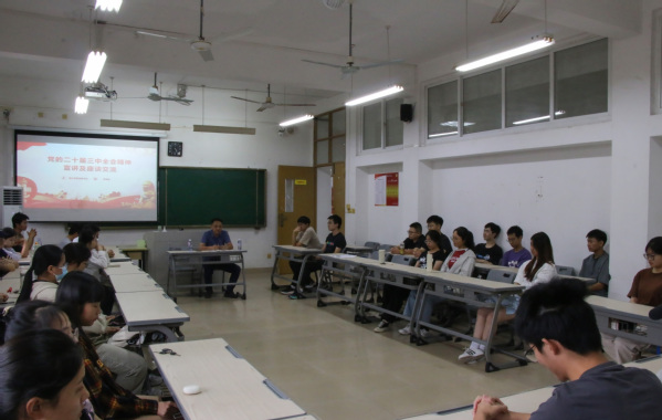 10月10日,数计学院党委书记陈章益于理工415开展党的二十届三中全会精神宣讲并召开座谈交流。2022级和2023级入党积极分子代表参加。