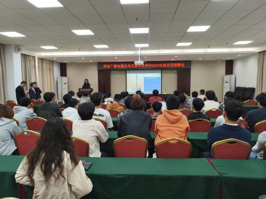 宣讲会以筑梦广电事业 共绘职业蓝图为主题,通过播放国家广播电视总局无线电台管理局及六四一台专题宣传片,全景呈现行业发展历程与技术创新成果。在政策解读环节,人事科负责人系统介绍了涵盖技术维护、网络安全等领域的10个招聘岗位,着重解析了薪酬体系、福利保障及职业发展通道,特别针对应届毕业生关切点制作了职业发展路径图。