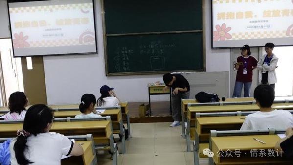 为深入贯彻党的二十大提出的“重视心理健康和精神卫生”相关要求,积极响应“5.25我爱我”心理健康节号召,践行立德树人根本任务,我院心理健康部于5月15日在理工419教室举办“拥抱自我,绽放青春”心理健康团训活动。学院23级、24级同学共计50余人参与活动。
