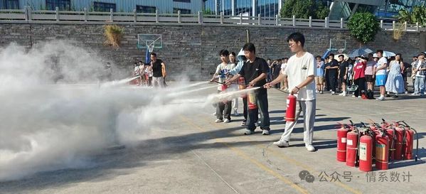 为切实增强 2025 级新生的消防安全意识,提升其应急自救与初期火灾处置能力,构建平安和谐的校园安全环境,10 月 16 日下午,数计学院联合校保卫处,在明德体育馆室外篮球场共同开展面向 2025 级新生的消防灭火演练活动。