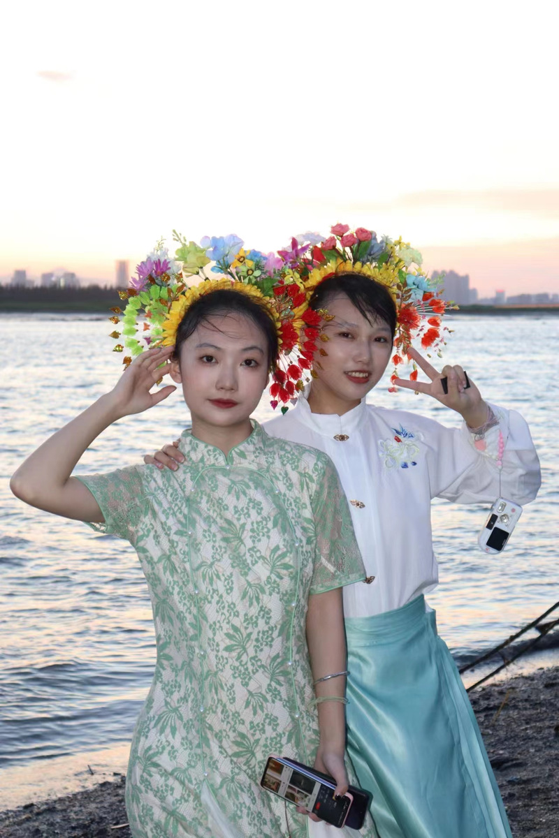 第三天,实践队在蟳埔古村开展蟳埔文化体验活动,体验蟳埔民俗,队员们亲身体验蟳埔服饰、头饰文化。