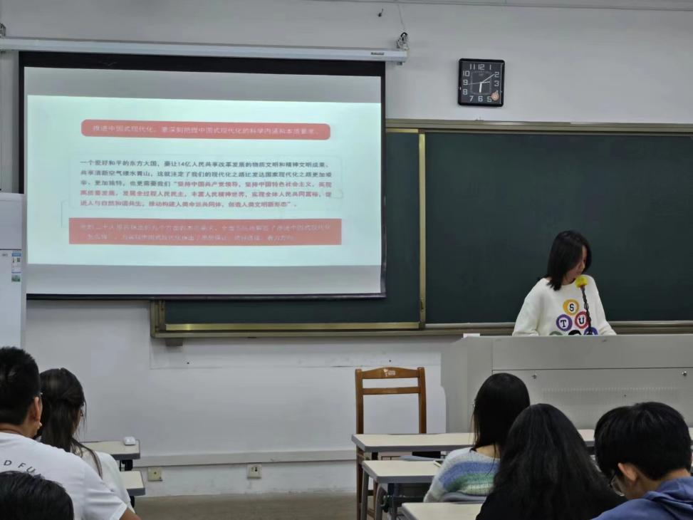 培训会上,张轩妍带领同学们学习党的二十大精神,强调作为学生干部,要始终谨记为广大师生服务的工作理念,从同学中来到同学中去,坚持中国共产党领导,坚持中国特色社会主义,学习伟大建党精神,始终保持踔厉奋发、勇毅前行的精神状态,在中华民族伟大复兴的新征程上贡献青春力量。此外,张轩妍还从学生干部的学业要求和服务能力、学生会的相关工作要求等方面展开深入阐述,强调要把学习贯彻习近平新时代中国特色社会主义思想主题教育和学生会工作结合起来。