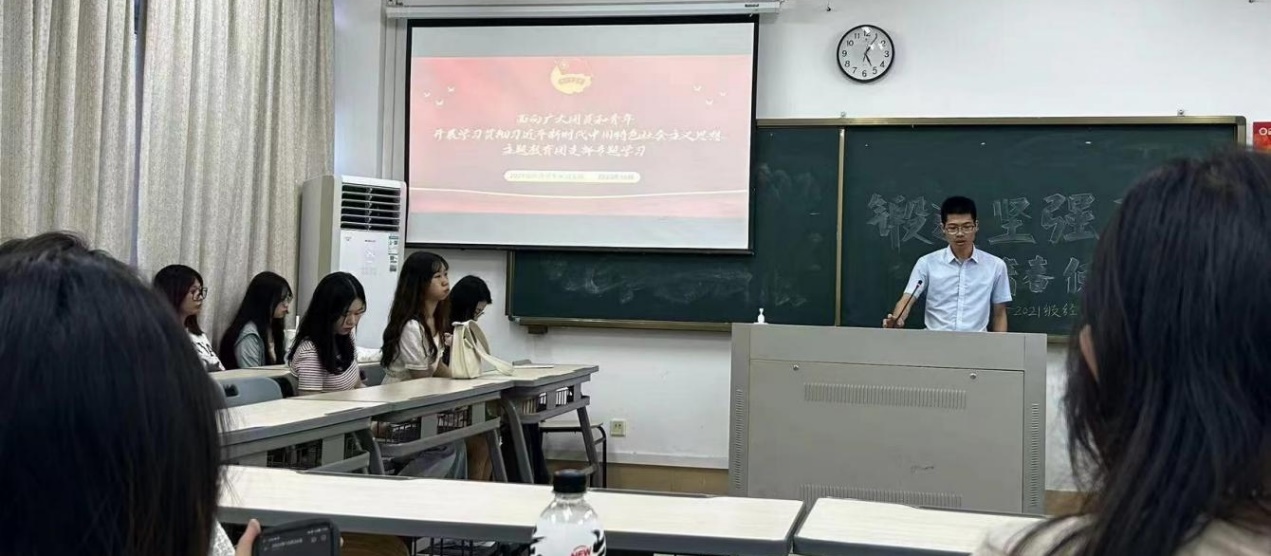 为深入学习习近平新时代中国特色社会主义思想,推动团员和青年主题教育走深走实,日前,陈守仁商学院各班级于文科楼开展理论学习研讨会,本次活动以主题团课的形式开展,由辅导员老师和各班级团支书担任主讲人。