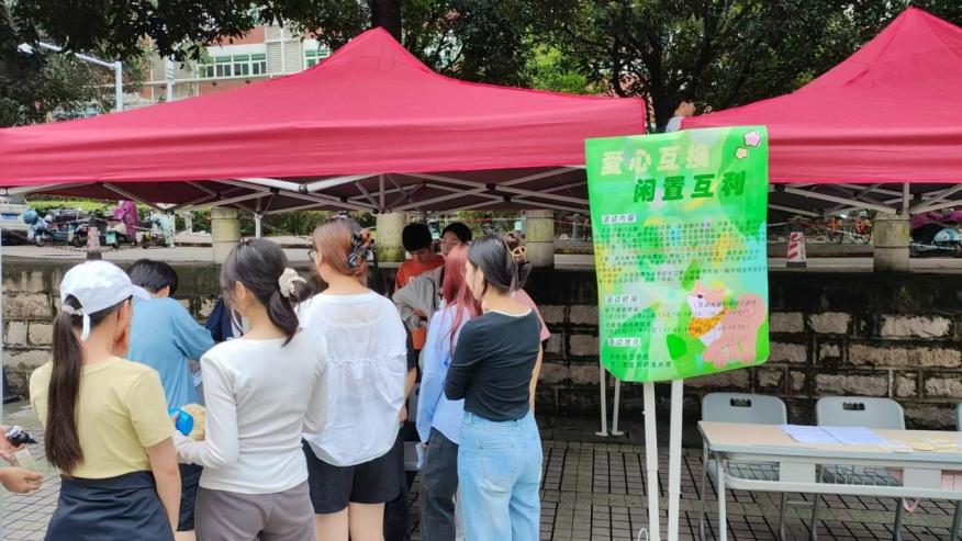 为深入学习贯彻落实习近平总书记关于新时代弘扬雷锋精神的重要指示精神,深刻把握雷锋精神的时代内涵,弘扬中华民族勤俭节约的传统美德,让闲置物品的效益达到最大化,实现物尽其用、环保节约、循环利用的良好环境效益。日前,陈守仁商学院青年志愿者协会在第三食堂前开展“以旧物换新颜,传春‘锋’暖校园”闲置物品置换活动。