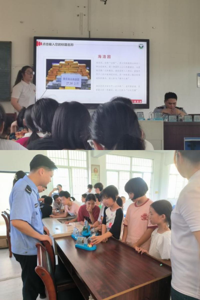 派出所警官通过授课讲解、实物观摩等方式,向学生们介绍了多种毒品的名称、特征及其危害,提高了学生对毒品的识别、辨别能力。并通过列举实际案例,详细分析新型毒品是如何通过伪装来迷惑人心,以及一旦接触后可能导致的身体损害、心理依赖乃至生命威胁,增强了学生们自觉抵制毒品的意识。