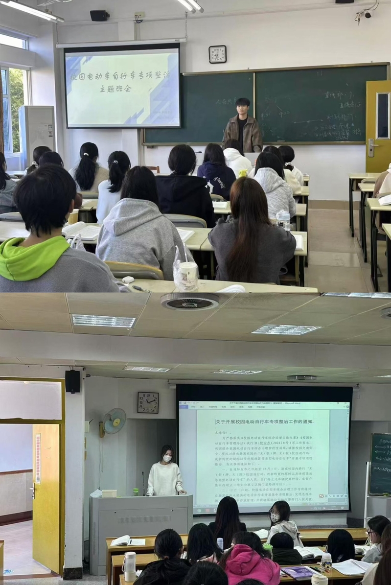 在班会上,各班班干们带领大家学习了各种电动车安全知识,阐述了电动车可能带来的安全隐患,对校内存在的无(假)牌、无(假)校园通行码,以及超标、违规改装等电动自行车进行了专项整治宣传,要求学生自行处理违规车辆。此外,班干们还为大家播放了电动车因停放不当所引发的安全事故视频,敲响安全警钟,让大家牢记安全第一,严守校园电动自行车管理规定。