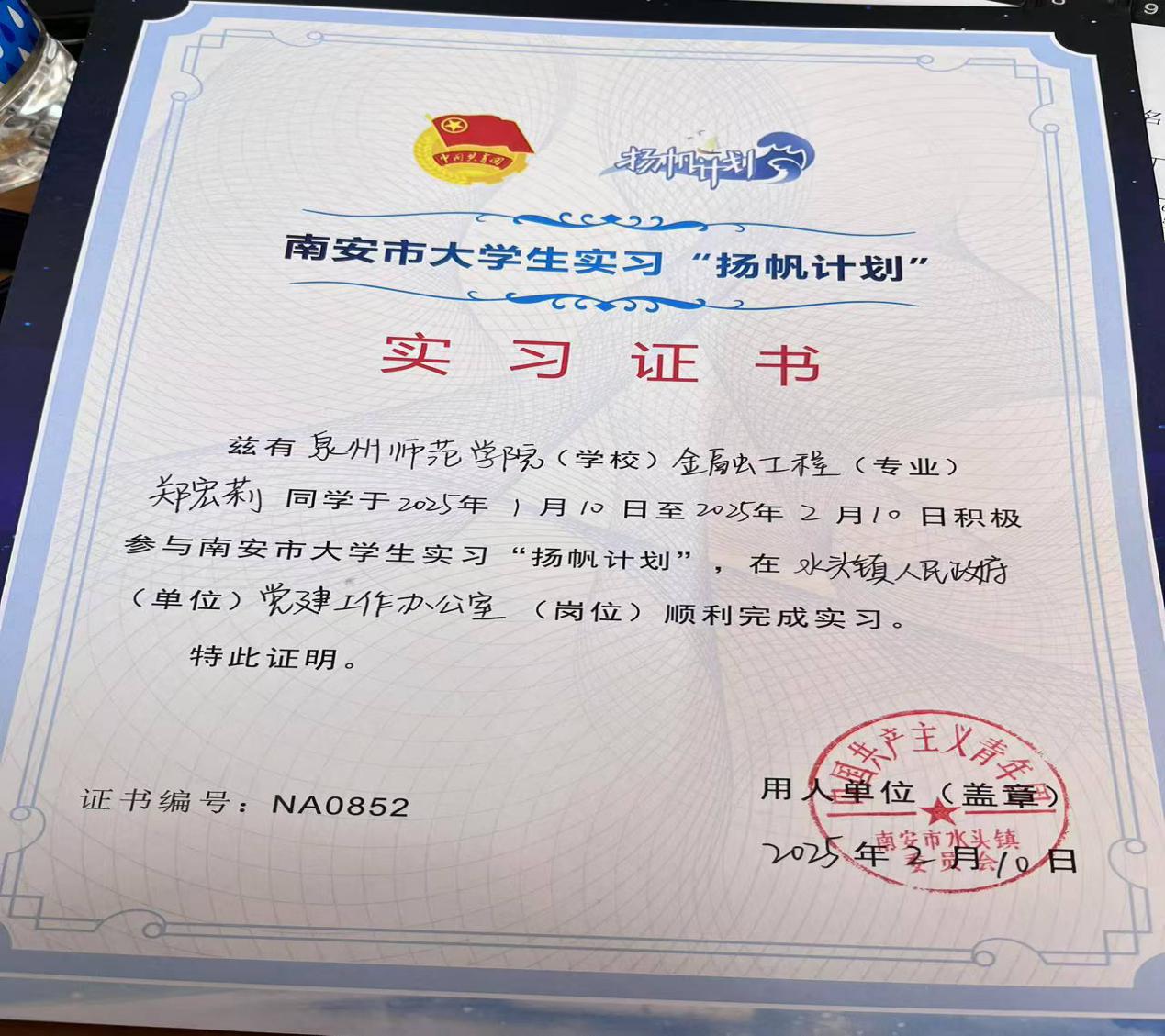 郑宏莉,陈守仁商学院2022金融工程专业学生。在实践期间,她有幸担任泉州市南安市水头镇人民政府党建工作办公室干事。日常工作中,她积极协助推进各项党建工作。一方面,协助策划并组织开展党员主题教育活动,从前期方案拟定到具体实施,包括联系活动场地、邀请讲师等,确保活动顺利进行;另一方面,负责整理和更新党员档案资料,认真核对每一项信息,保障档案的准确性和完整性。同时,积极参与党建宣传工作,撰写相关稿件,通过镇政府官方渠道进行发布,扩大党建工作影响力。