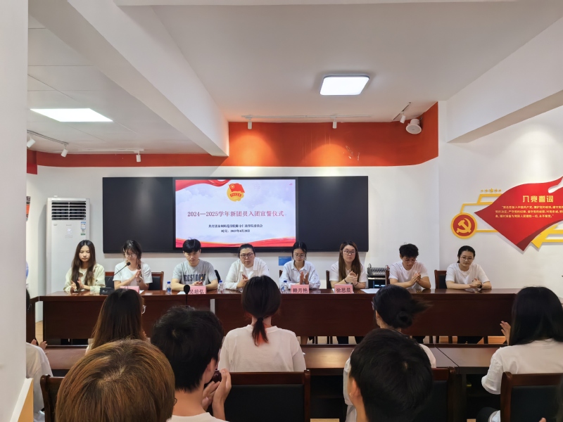 仪式在庄严的国歌声中正式开启,全体参会人员整齐肃立,激昂的歌声传递着浓浓的爱国情怀,现场氛围庄重而热烈。随后,主持人宣读新发展团员名单,由学院团委文娱部副部长周奕果带领新团员进行入团宣誓。面向鲜艳的团旗,团员们高举右拳,郑重宣誓:“我志愿加入中国共产主义青年团,坚决拥护中国共产党的领导,遵守团的章程,执行团的决议,履行团员义务,严守团的纪律,勤奋学习,积极工作,吃苦在前,享受在后,为共产主义事业而奋斗。”