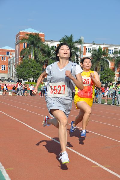 本报讯(记者 马景怡 实习记者 皮隽松 陈太亮)11月5日下午,女子一百米决赛正式开始,来自诗山校区学前专业12级的黄桂仁同学在此次比赛中一展教科风采。比赛的准备阶段,选手们在起跑线上摩拳擦掌,进行热身。发令枪响,选手们如离弦之箭飞奔而出,开始了最后的决战,你追我赶,互不相让。观众们的欢呼声此起彼伏,全场的热情瞬时被点燃,黄桂仁实力不俗,不断加速,连续超越多人,最后以14〞59获得第五名的好成绩,为学院争夺了荣誉。