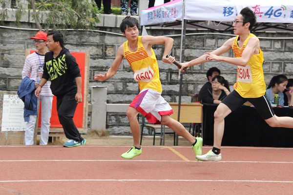 运动员们做完赛前热身,各就各位。发令枪响时,第一棒运动员迅速起跑,以矫健的步伐冲向前方,与第二棒迅速交接。赛场周围此起彼伏的呐喊声加油声为苏东雄增添了动力。第三棒与第四棒交接时虽配合得不是非常顺利,但这一失误并没有影响到他的发挥,他拼命追赶,拉开与身后对手的距离,最终还是拿下了第五名的好成绩。