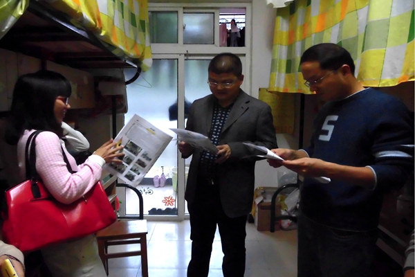 本报讯(记者 李阿香 费雪清)12月3日下午,我院党总支书记陈一祥在辅导员、学生干部的陪同下走访、检查了即将毕业的学生宿舍,发现、处置了用电安全、网线摆放等问题。