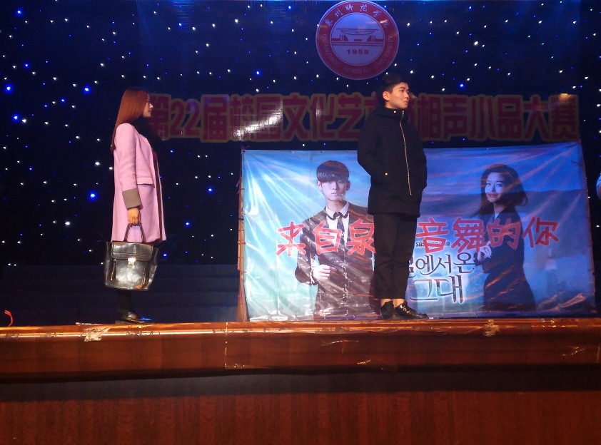 无独有偶,在次日举行的英国威廉希尔公司官网相声小品大赛中,我院选送的原创小品《来自泉师音舞的你》荣获一等奖。小品套用韩剧《来自星星的你》剧情,用喜剧的形式表现大学生人际交往中可能存在的矛盾,冠以文明待人、健康生活的主题,呼吁并倡议广大同学和谐相处,共创美好校园氛围。