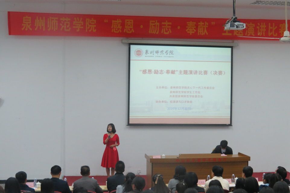 本报讯(记者 沈远 周继先 陈桂凤 摄影记者 王婉茹)12月15日下午,我校第24届“感恩、励志、奉献”主题演讲比赛(决赛)暨颁奖仪式于中山报告厅一楼正式落幕。我院择优派出15文员胡静和16中文罗晓倩参赛,经过一番角逐,最终我院代表胡静以93.7分的成绩获得一等奖。